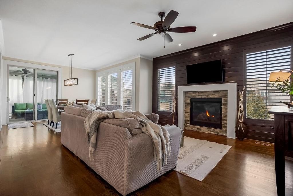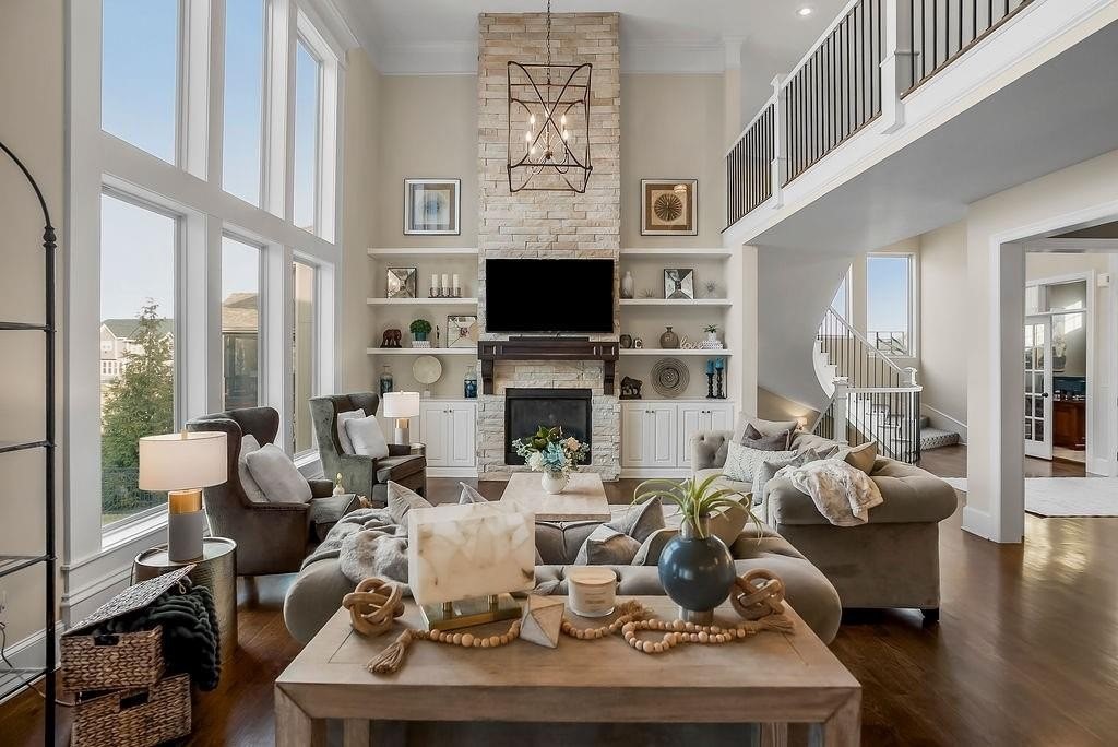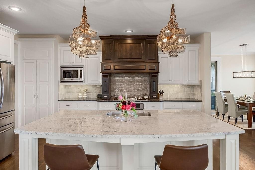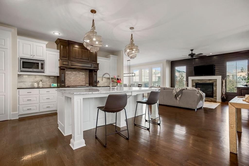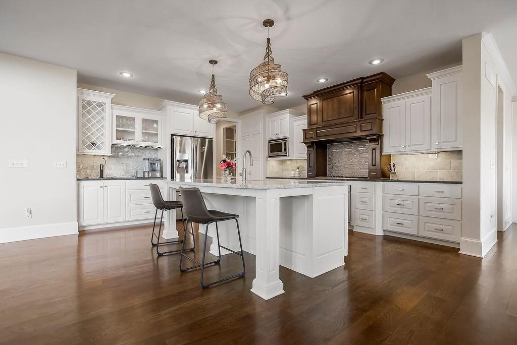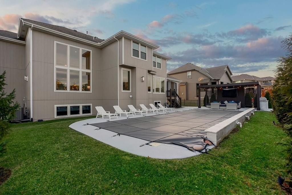 At this one owner, impeccably maintained home, you will find a striking blend of architectural elegance and resort inspired living. A dramatic spiral staircase connects all levels and sets the tone for the light filled, open concept design where the kitchen, dining, and living spaces flow seamlessly for effortless entertaining. The chef's kitchen is complemented by a walk in pantry that opens to a fully equipped back kitchen with additional prep space, second oven, and full size refrigerator, ideal for hosting and everyday function. Every bedroom offers its own private en suite, delivering comfort and privacy throughout. Step outside and imagine the seasons ahead. Outdoor living is a true highlight, featuring a screened in porch with fireplace, outdoor kitchen amenities, pergola covered dining and lounge areas, all overlooking a custom in ground pool with water features, creating a private retreat once warm weather returns. An uncommon expanse of green space beyond the backyard and neighboring homes adds a rare additional greenspace. Additional features include an unfinished daylight basement stubbed for a bath with egress, offering future expansion possibilities, a fourth tandem garage bay for car or workshop enthusiasts, and a coveted cul de sac location. Call agent for details and to schedule a private showing.